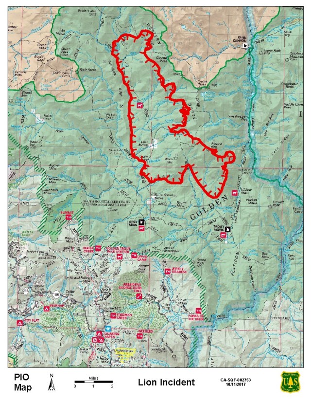 As high pressure moves in from the south, smoke will begin a westward push. This should decrease the impacts to the eastern Sierra area this weekend, but bring some impacts towards communities near the foothills from Three Rivers and Visalia south to Springville and Porterville tonight into Sunday. Some residual smoke from the northern California fires gradually is dispersing in the San Joaquin Valley, although generation north of the Bay Area continues. You can learn more about air quality, and daily smoke forecasts are available visiting either http://www.airnow.gov or http://www.valleyair.org. Lion Fire visit https://inciweb.nwcg.gov/incident/5626/