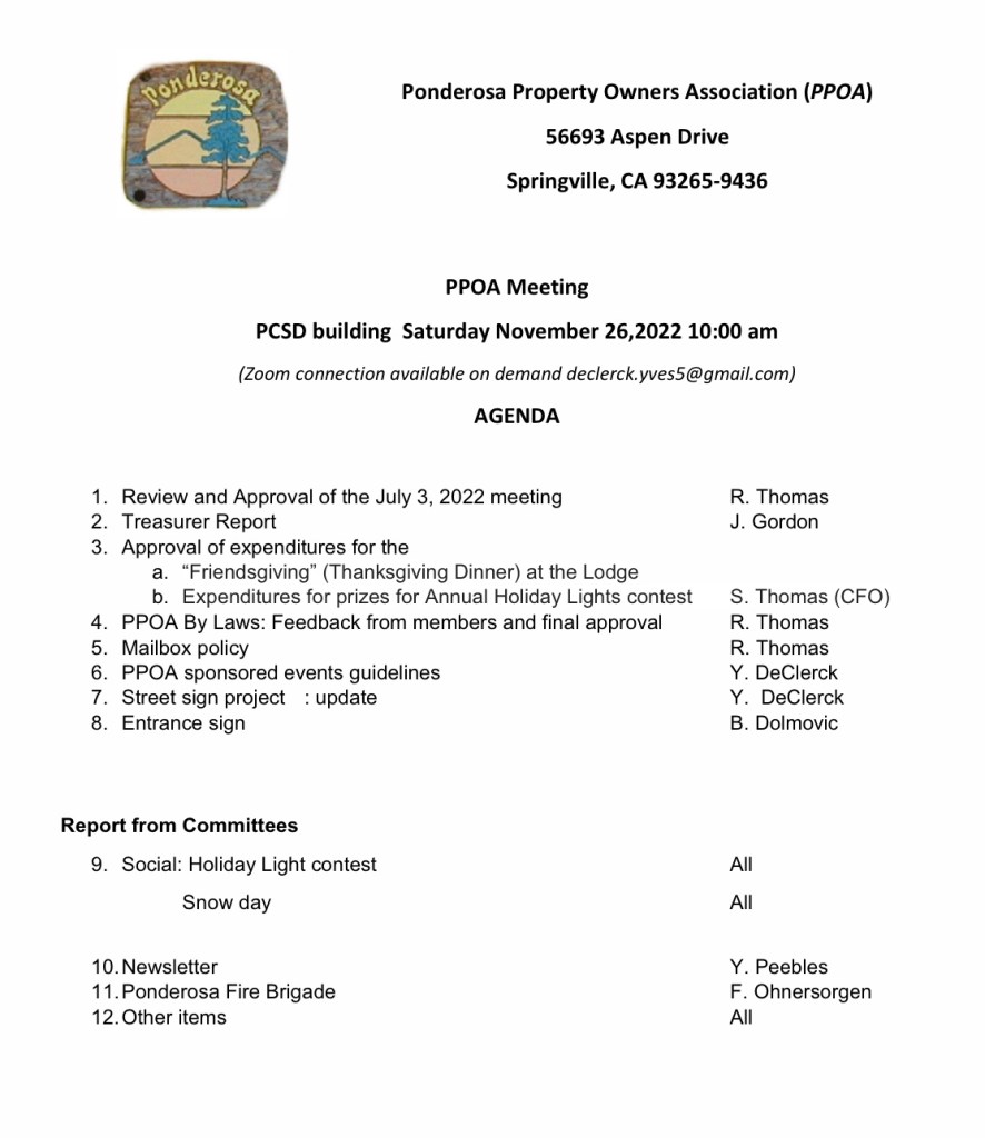 Please join the PPOA at their board meeting this coming Saturday. Info below.